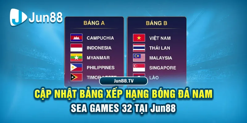 Cập nhật bảng xếp hạng bóng đá nam Seagame 32 tại Jun88