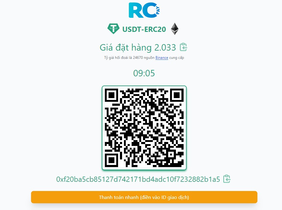 - Bước 4: Hệ thống chuyển sang giao diện mới với một mã QR và ô trống để bạn điền ID giao dịch.