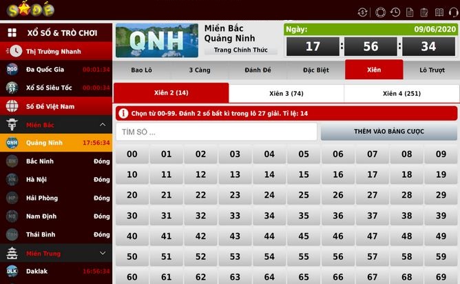 Bước 3: Chọn Số Đề từ thanh menu, bấm Chơi Ngay, chọn Đài, nhập số và đặt cược.