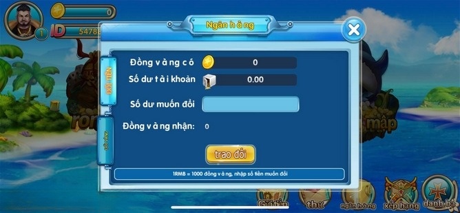 Bước 3: Chúng ta tiếp tục trò chơi, đăng nhập tài khoản Jun88 sau đó đổi RMB thành tiền vàng để chơi Vua Câu Cá. (Khi chơi, thành viên chỉ cần đổi tiền VNĐ sang Nhân dân tệ để rút tiền.)