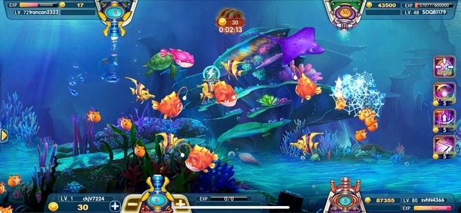 Sử dụng các công cụ hỗ trợ như Nhắm Cá Lớn, Chính Xác 100%, Bắn tự động, nhân đôi kinh nghiệm, đạn tăng tốc để săn lùng những chú cá chạy nhanh.